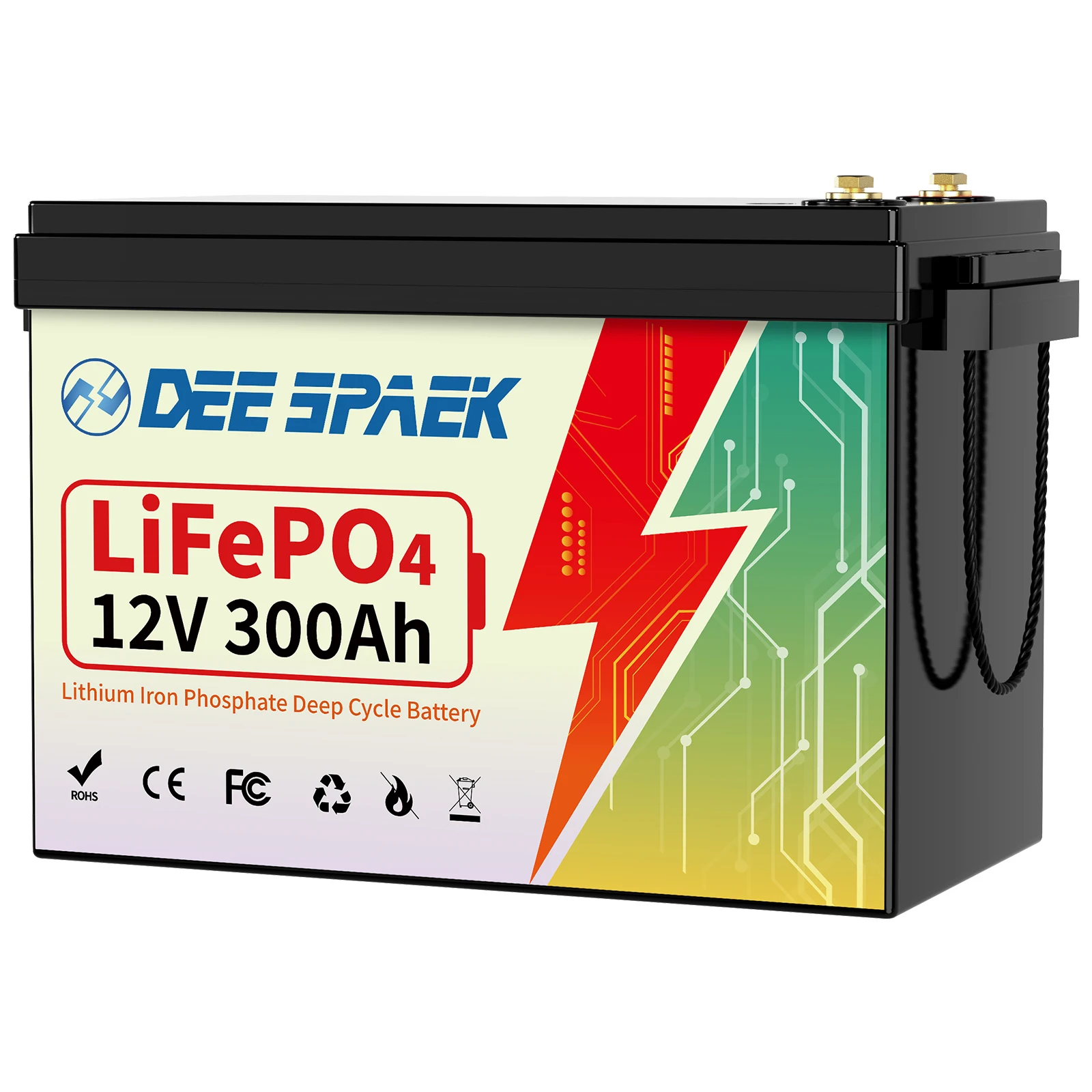 EU US Stock 12V 300Ah Lithium Iron Phosphate Battery With Upgraded BMS 8000+ Cycles For RV Campers Golf Cart Off-Road Off-Grid