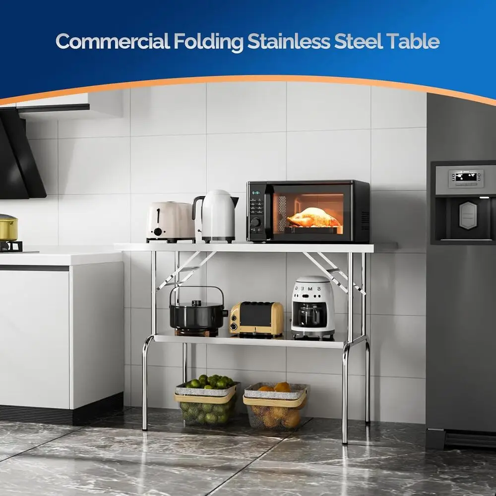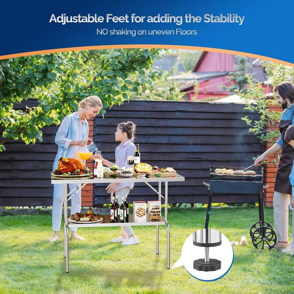 48" x 24" Camping Stainless Steel Folding Work Table With Undershelf Portable