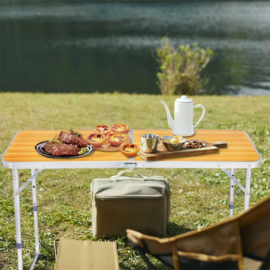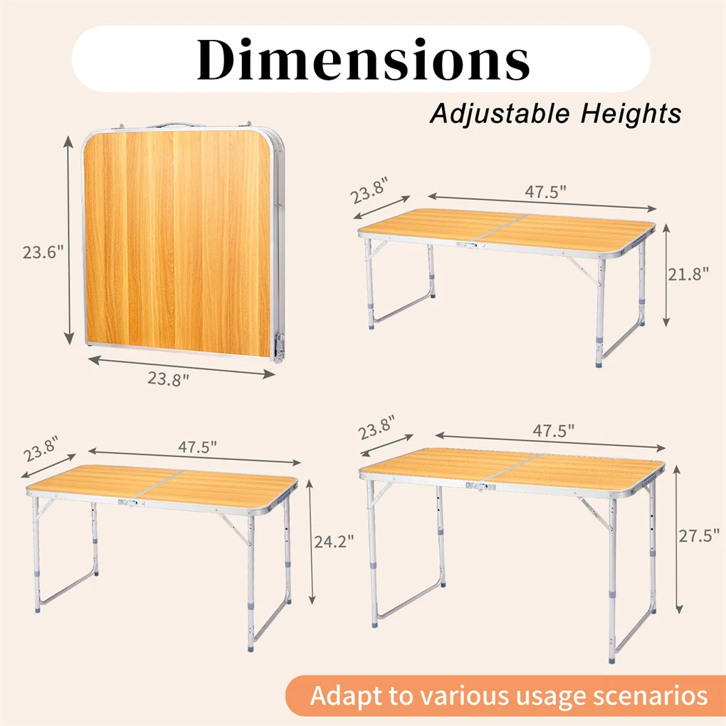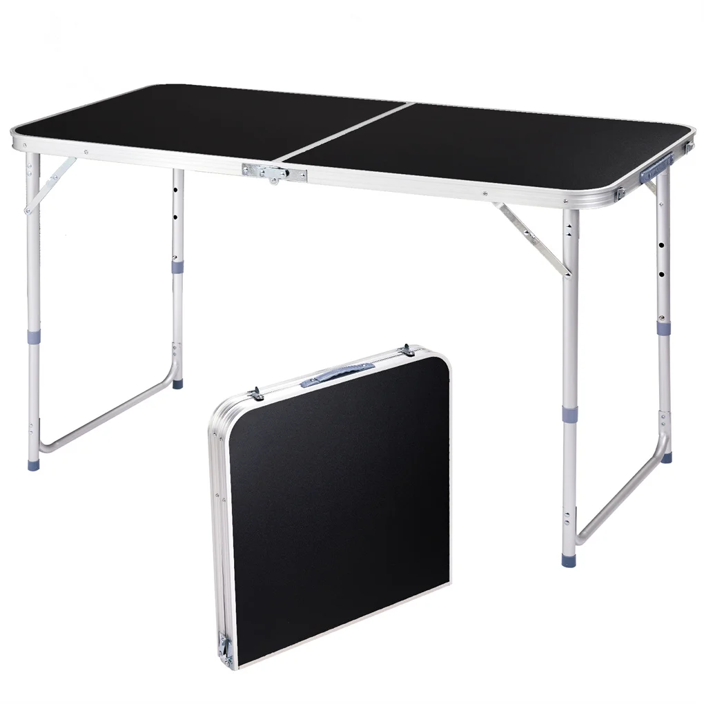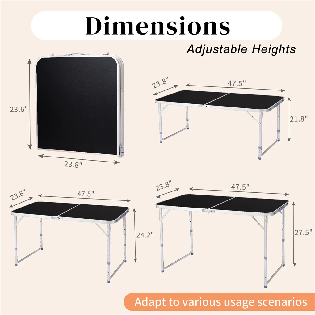 4Ft Folding Table With Carrying Handle Height Adjustable Lightweight Fold Up Portable For Indoor Outdoor