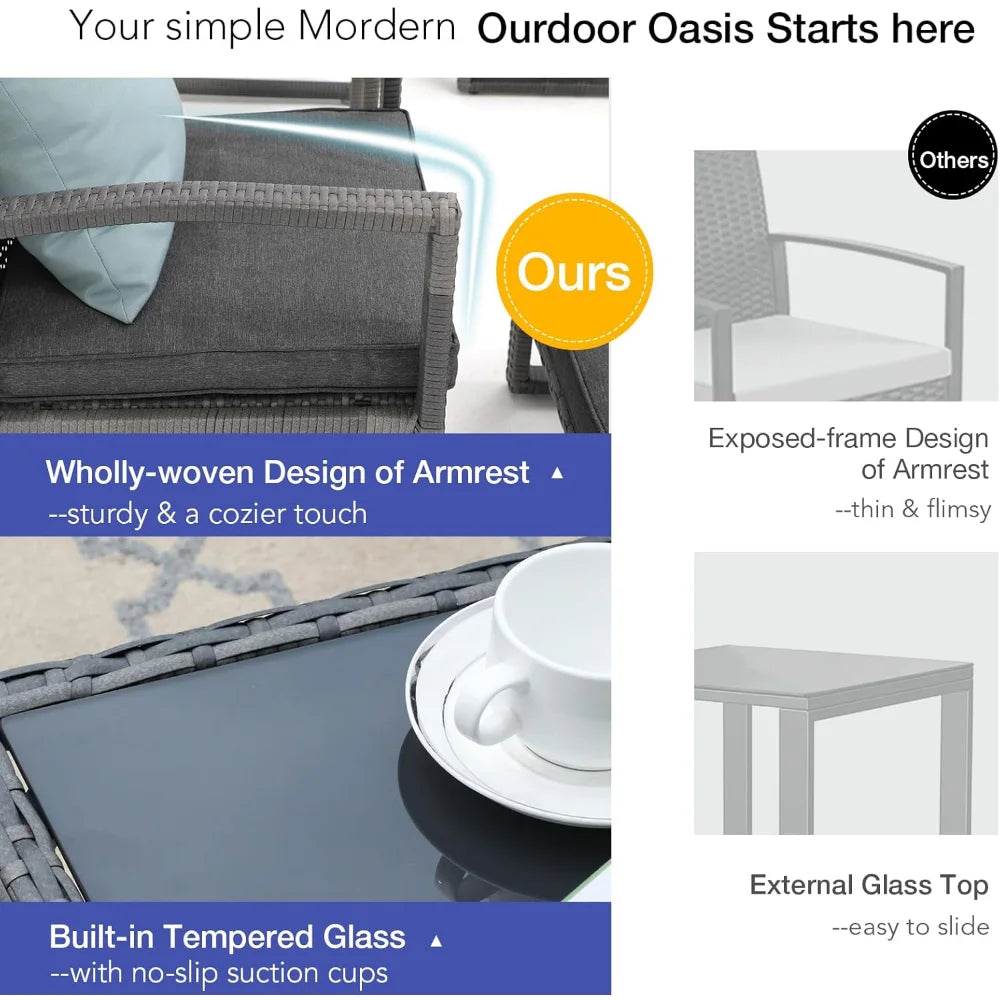 - [Built to Last & Wholly-Woven Design]: Made of a sturdy powder-coated steel frame, UV and weather-resistant PE resin rattan wicker, the armrest is completed with a unique wholly-woven design for a softer and cozier touch. All of this makes the 5 Pieces Outdoor Conversation Set built to be sturdy and durable enough for a long service life.