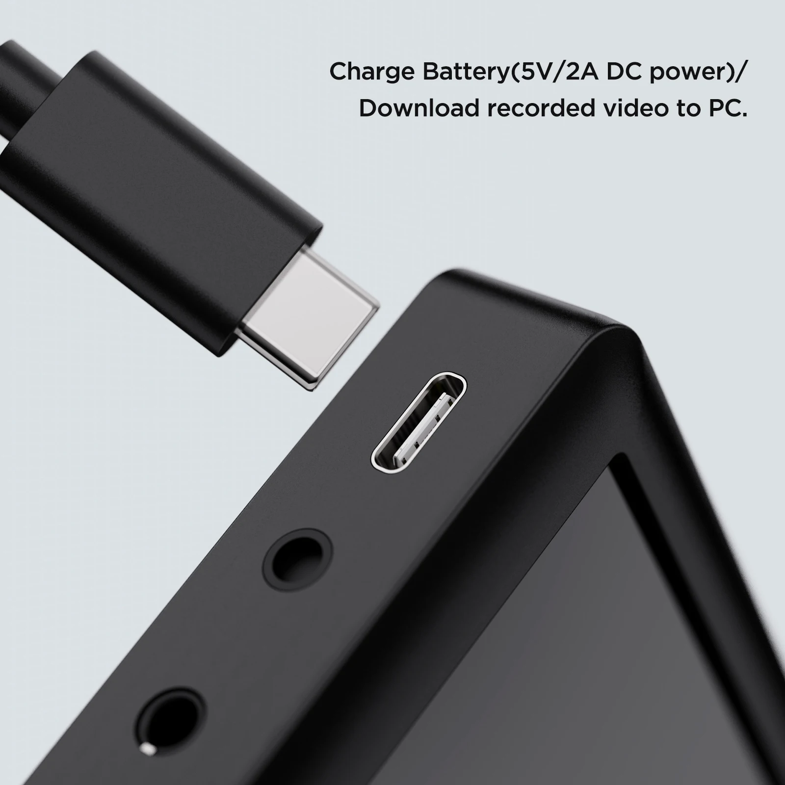 The included USB C cable is for power or managing recorded files. 3.5mm to 3RCA cable is for AV input. No computer or software required.