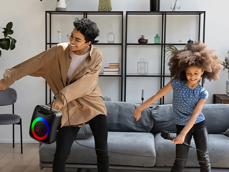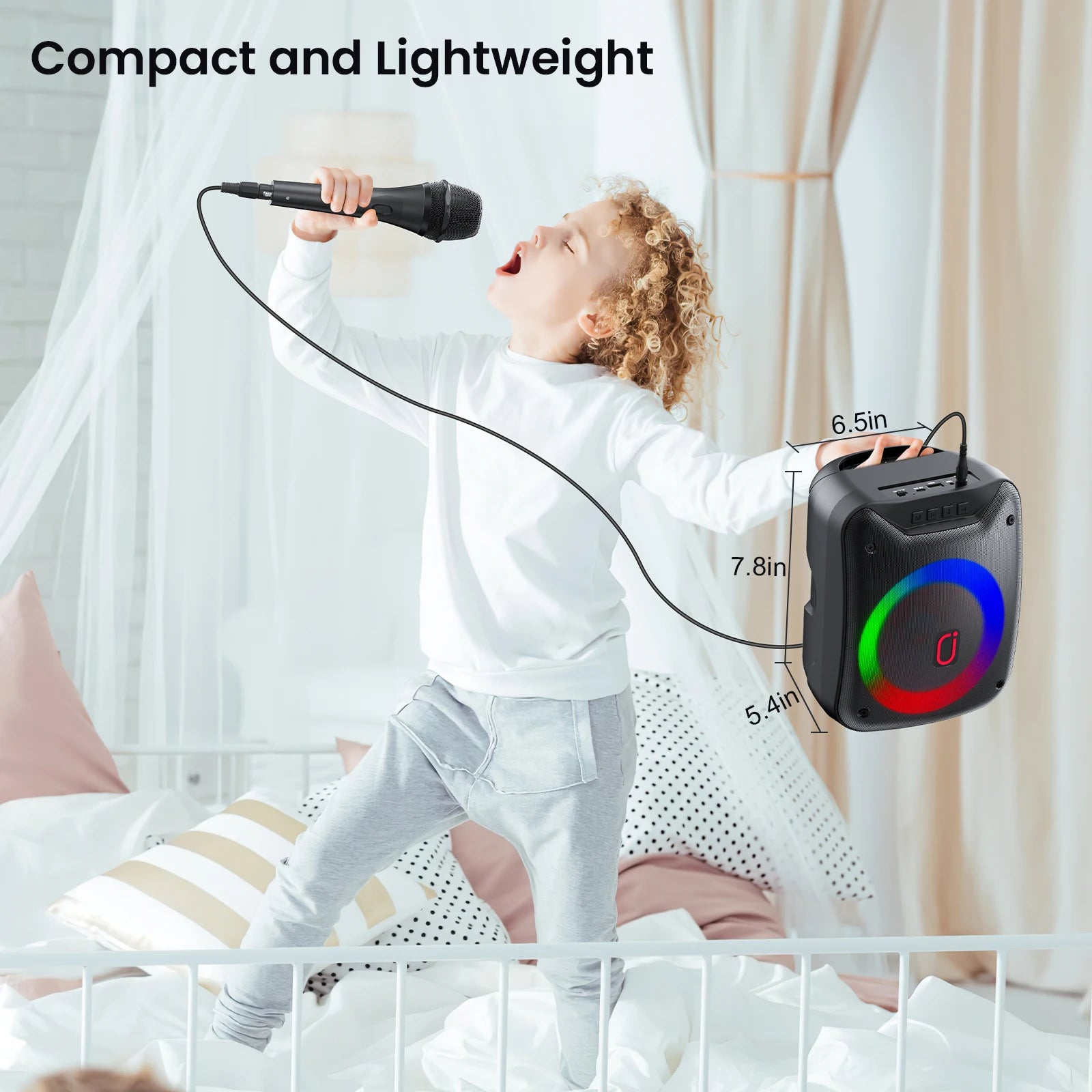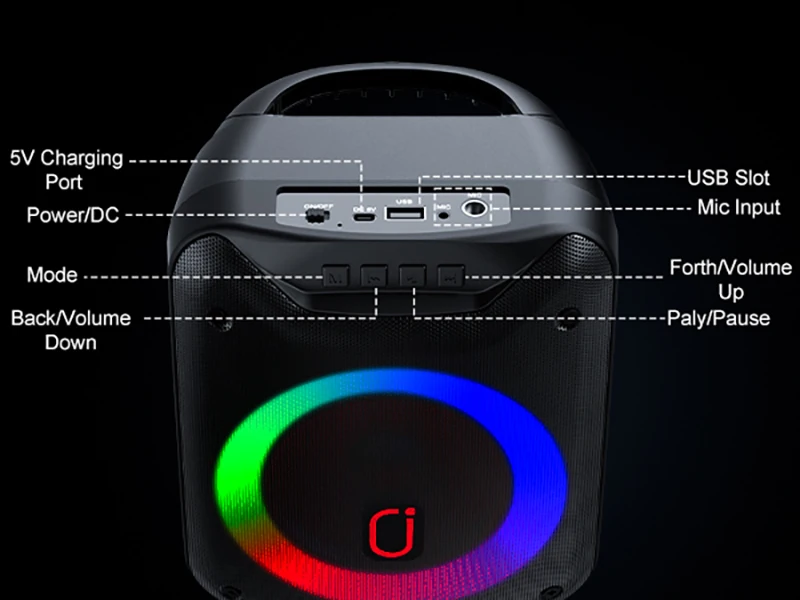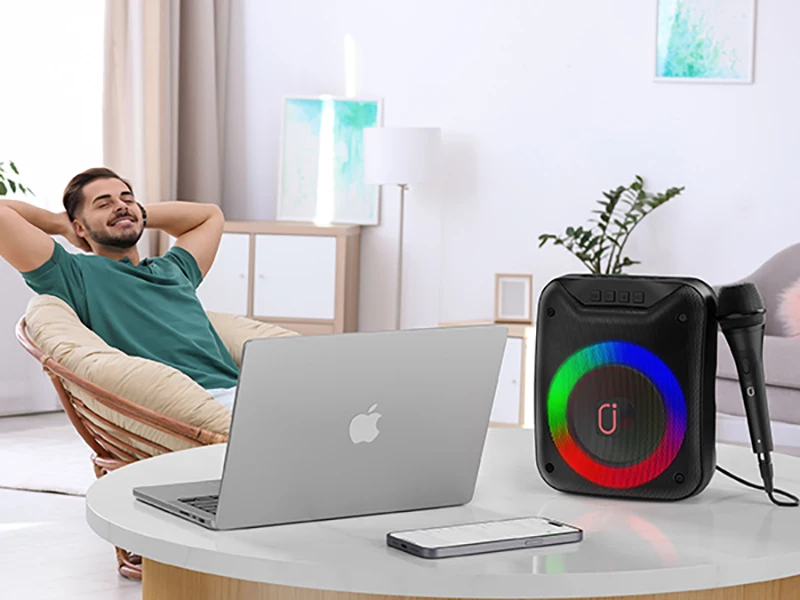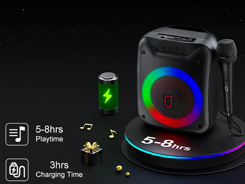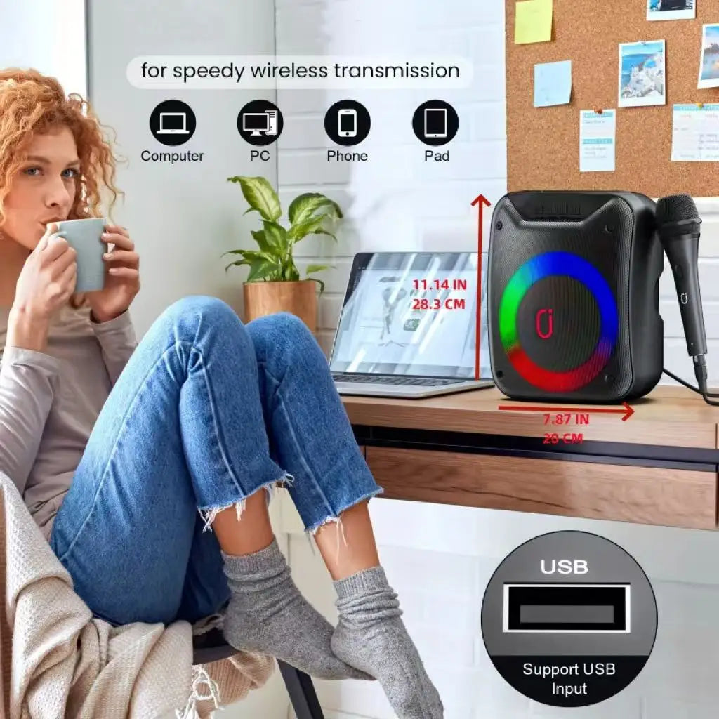FanFun Wireless Outdoor Speaker, Portable Speaker with Microphone, Colorful DJ Light, Dual Microphone Jacks, TF Card Compatible