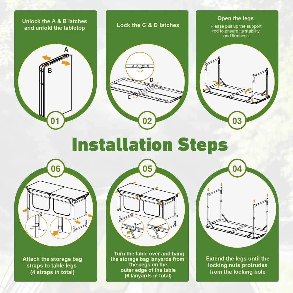 Folding Camping with Storage, Lightweight & Portable, 3 Heights Adjustable Folding, Outdoor Tables
