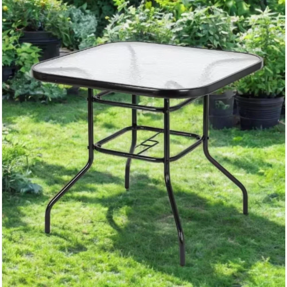 Outdoor Dining Table with 1.8” Umbrella Hole,Coffee Table with Toughened Glass Top, Patio Glass Side Table for Backyard