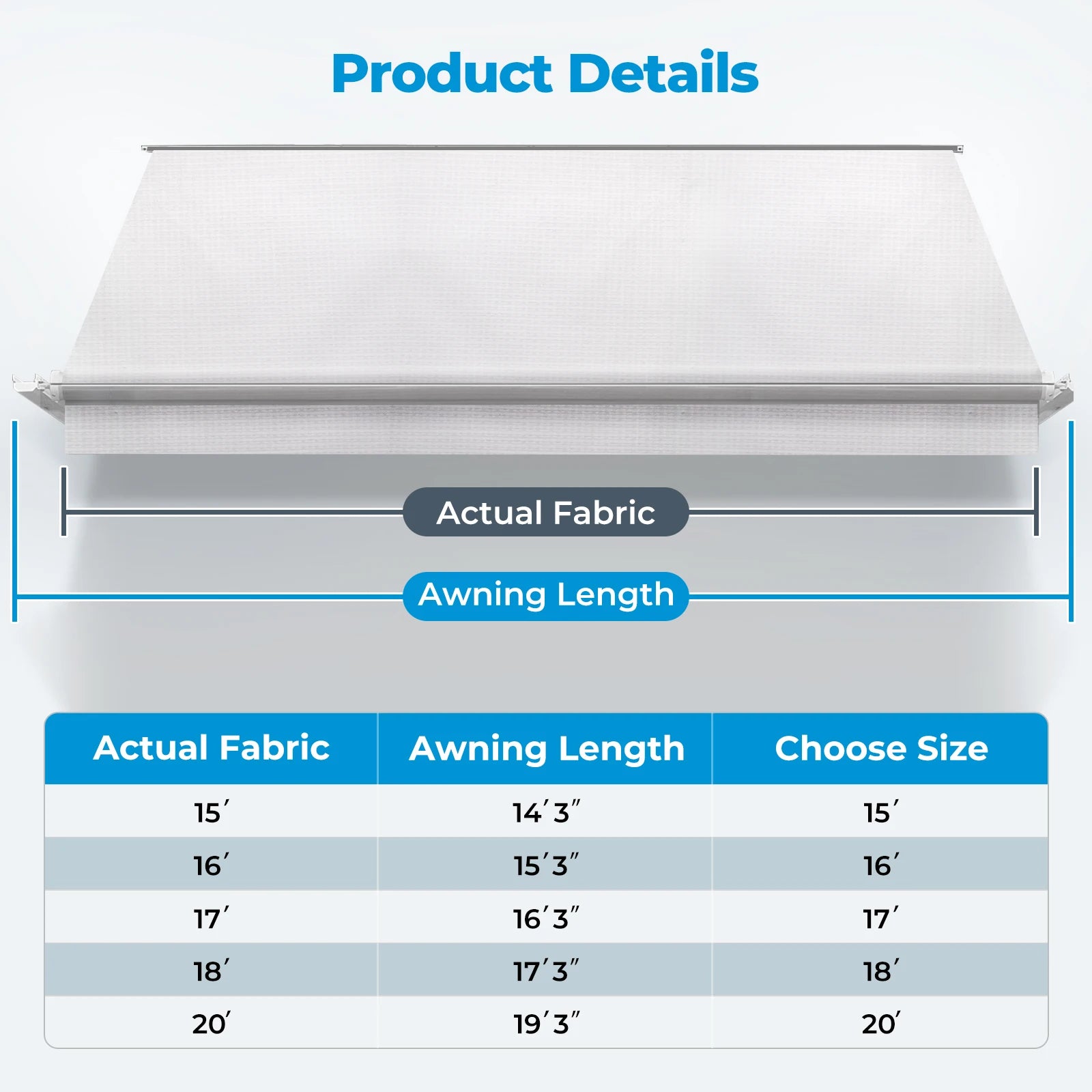 RV Awning Fabric Replacement 15'-18'&20' Camper Awning | five Width Size Options | white